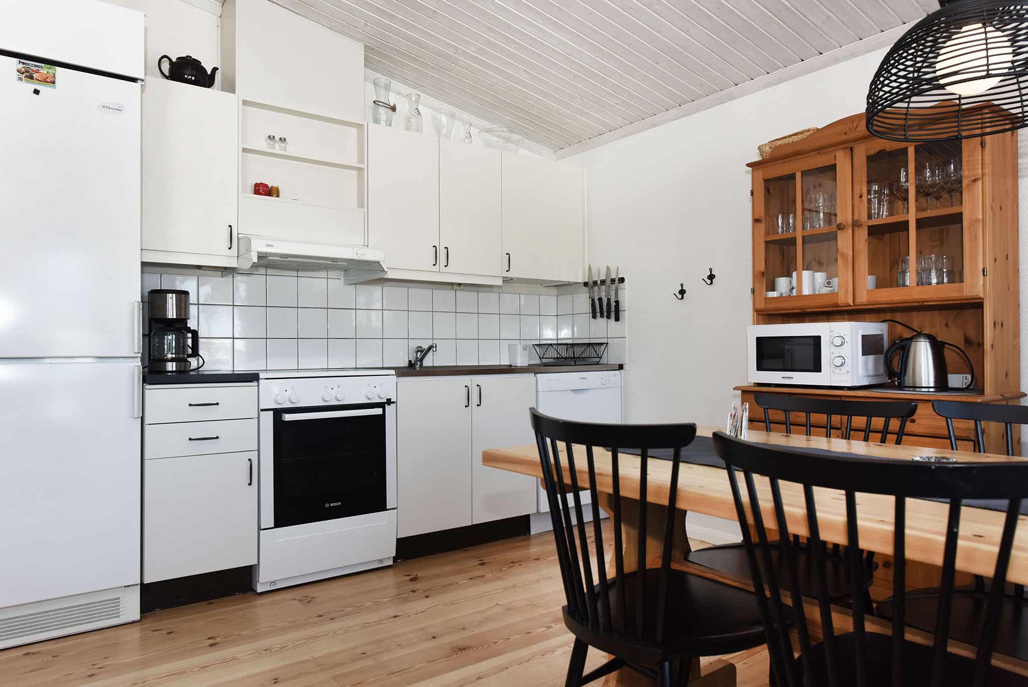 De keuken is voorzien van fornuis met oven, koelkast, vriezer, vaatwasser, magnetron.