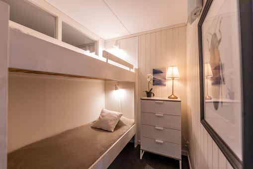 Slaapkamers:Slaapkamer-1 = 1 tweepersoonsbed. Slaapkamer-2 = 2 stapelbedden. Slaapkamer-3 = 1 stapelbed. Slaapkamer-4 = 1 stapelbed.
