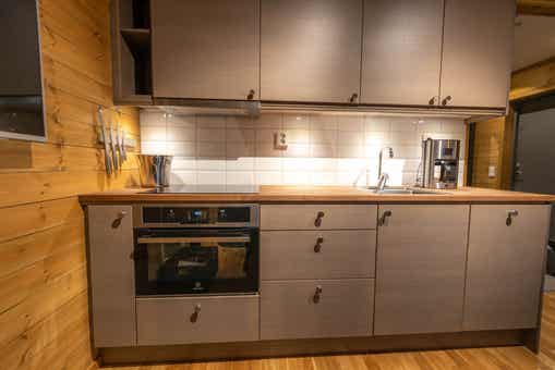 De keuken is voorzien van inductiekookplaat, oven met combimagnetron, koelkast, vriezer, vaatwasser, magnetron.