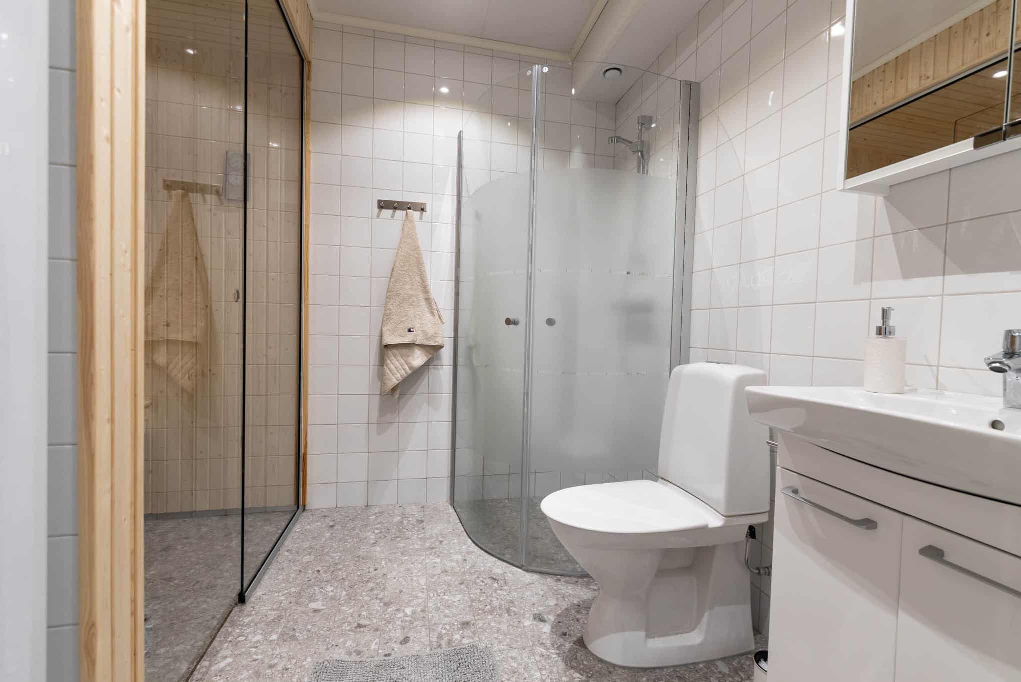 Badkamers:Badkamer 1: met douche/WC/sauna.