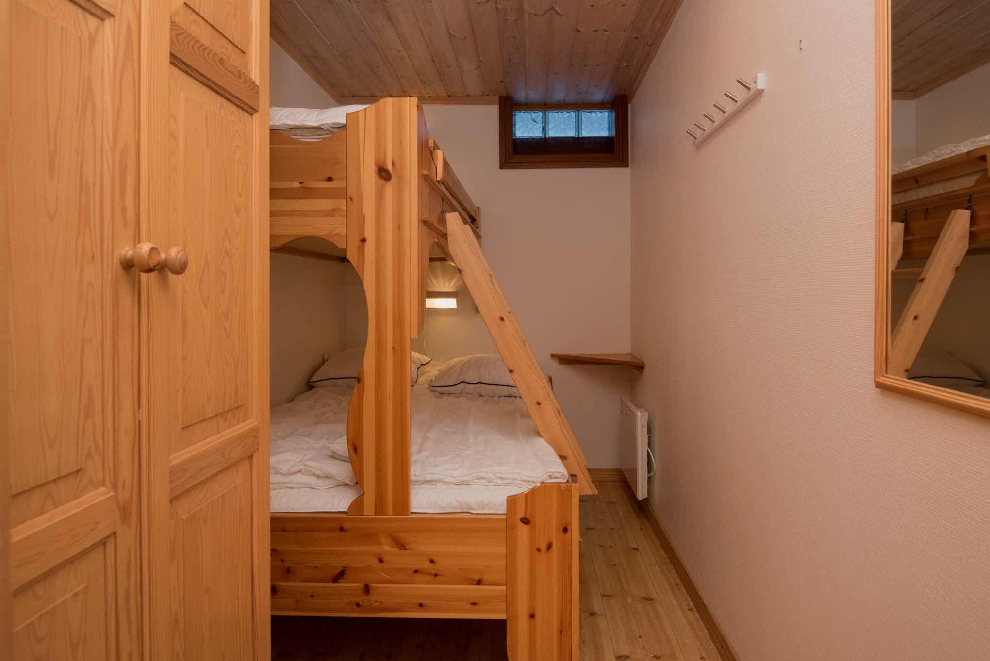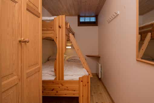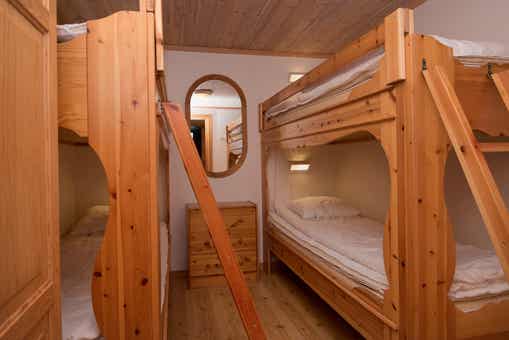 Slaapkamers:Slaapkamer-1 = 1 tweepersoonsbed. Slaapkamer-2 = 1 stapelbed met 120 cm breed onderbed. Slaapkamer-3 = 2 stapelbedden.