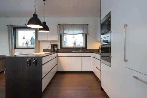 De keuken is voorzien van inductiekookplaat, inbouwoven, koelkast, vriezer, vaatwasser, magnetron.