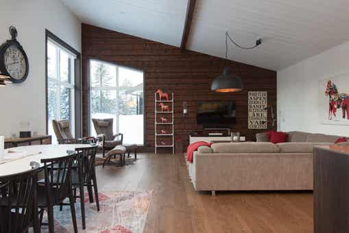 Wasaåsen bevindt zich in Lindvallen. Vrijstaand huisje, 8+2 bedden, 131 m², woonkamer met gecombineerde keuken, 4 slaapkamers, 2 douches, 2 WC, sauna.