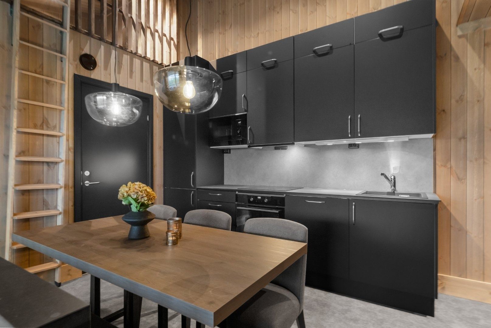 Yttersvingen D3.3 biedt alles wat u nodig heeft voor een ontspannen verblijf. De keuken is voorzien van een oven, koelkast, vriezer, magnetron, vaatwasser en koffiezetapparaat. Eethoek voor 5 personen, perfect om gezellig samen te eten. Na een dag vol activiteiten kunt u heerlijk ontspannen in de woonkamer, die is ingericht met een bank en televisie.