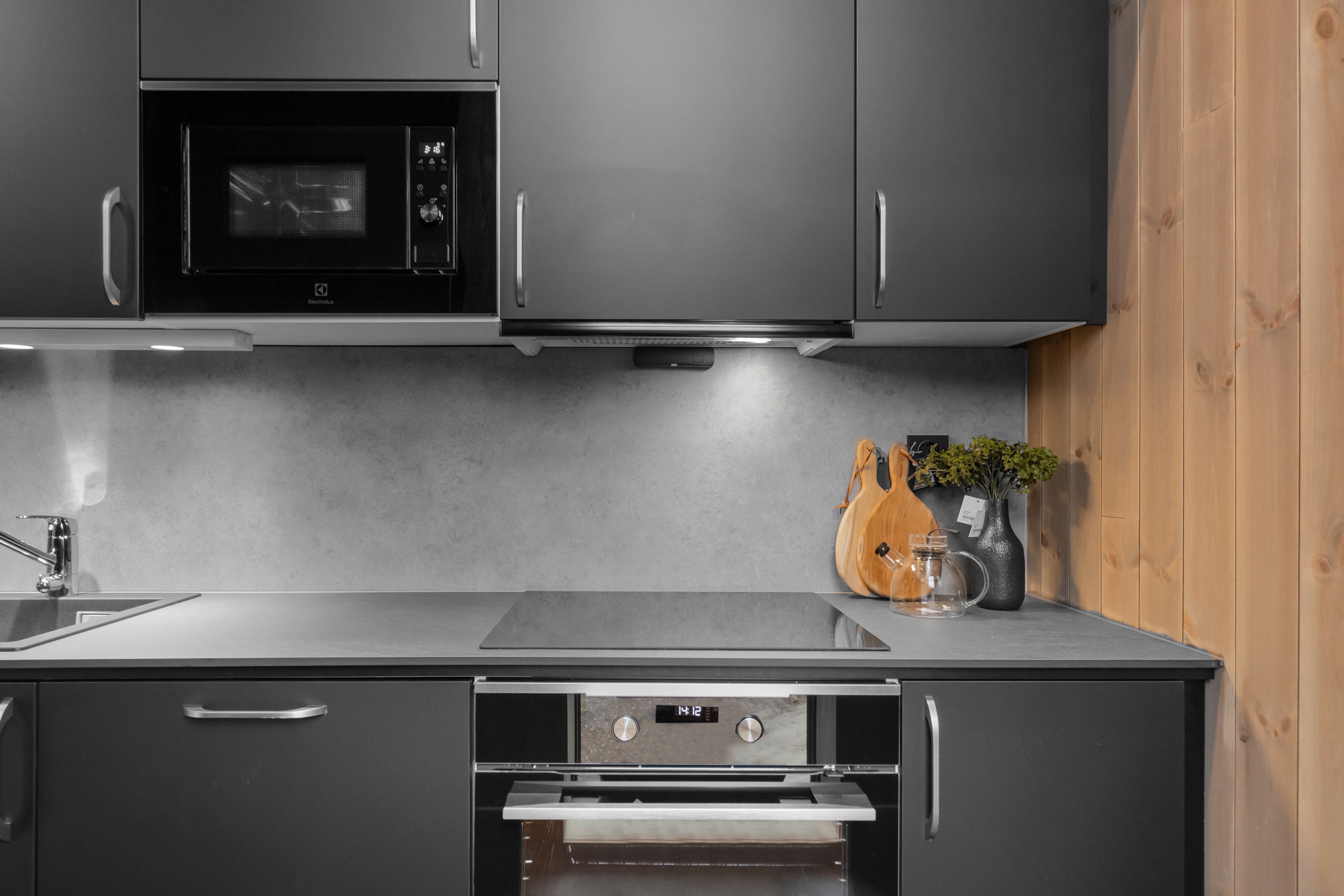 Ytters vissen Premium met balkon C3.1 biedt alles wat u nodig heeft voor een ontspannen verblijf. De keuken is uitgerust met een fornuis, koelkast, vriezer, magnetron, vaatwasser en koffiezetapparaat. Er is ook een capsule -koffiezetapparaat.